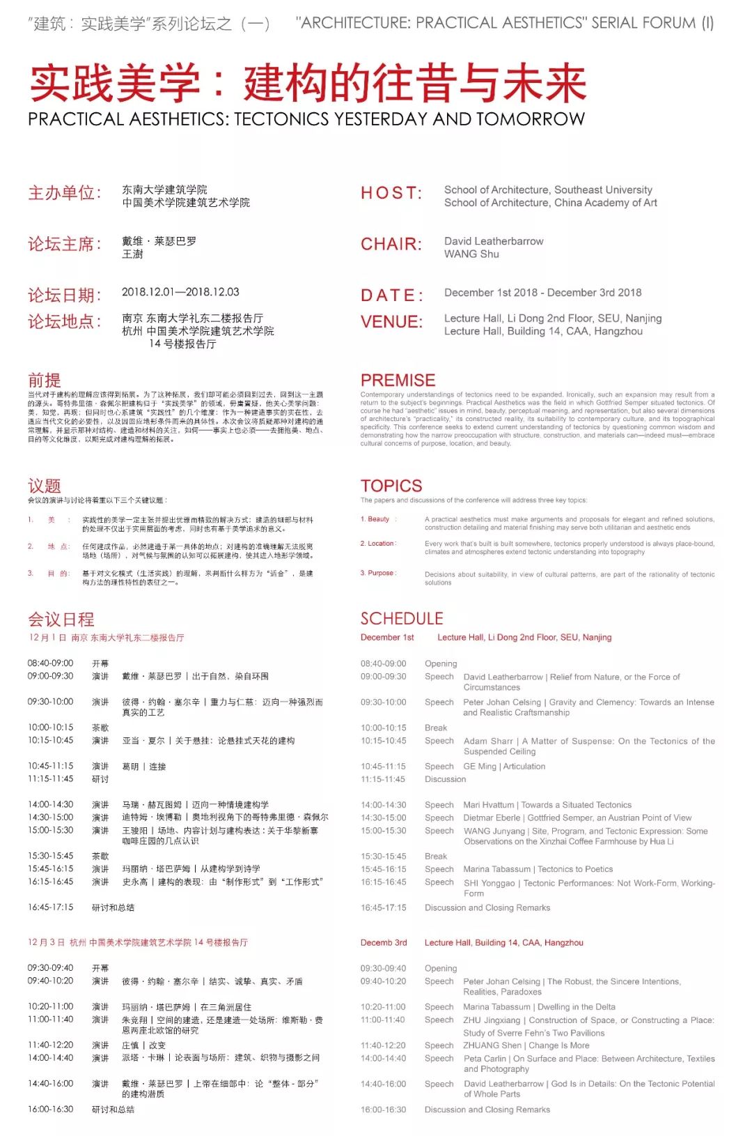 当代对于建构的理解应该得到拓展。为了这种拓展,我们却可能必须回到过去,回到这一主题的源头。哥特弗里德·森佩尔把建构归于“实践美学”的领域,毋庸置疑,他关心美学问题:美,知觉,再现;但同时也心系建筑“实践性”的几个维度:作为一种建造事实的实在性,去适应当代文化的必要性,以及因回应地形条件而来的具体性。本次会议将质疑那种对建构的通常理解,并显示那种对结构、建造和材料的关注,如何——事实上也必须——去拥抱美、地点、目的等文化维度,以期完成对建构理解的拓展。