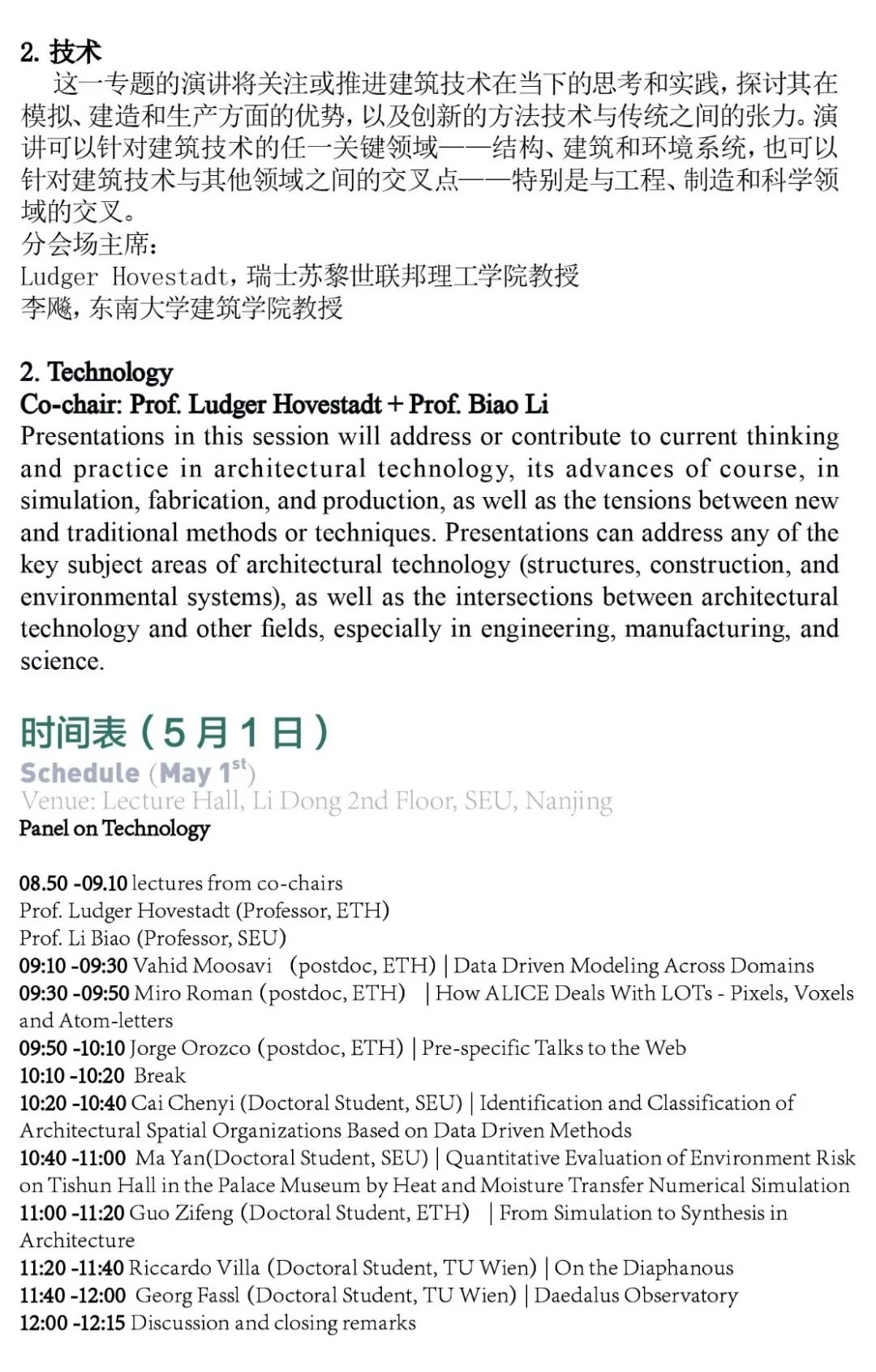 Since 1980s, ETH (Swiss Federal Institute of Technology) and SEU (Southeast University) have been working in close collaboration on architectural education. The international exchanges have been fruitful over recent decades, guiding fundamental changes in architectural pedagogies in these two institutions and others in Europe and Asia.