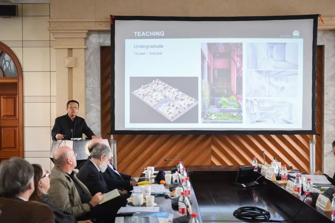 On the morning of November 20th, the international review meeting of school and discipline construction was held in the lecture hall, 2nd floor of Lidong Building at SEU Sipailou Campus. Professor Wang Baoping, SEU Executive Vice President, delivered a welcome speech on behalf of SEU, and briefly introduced the development history of both the university and the school. Dean Zhang Tong of SEU ARCH made a general report on the overview, educational mechanism, faculty construction, talent training, teaching, scientific research and practice, international cooperation, prospects and challenges of the school. Then Professor Han Dongqing, Professor Dong Wei and Professor Cheng Yuning made self-evaluation reports on behalf of the three disciplines of architecture, urban planning and landscape architecture respectively, which mainly explains the features of discipline construction. Finally, Professor David Leatherbarrow, Foreign Dean of I.D.S., reported on the construction process and achievements of I.D.S. during the past two years from the aspects of its overview, international cooperation, teaching, research results and prospects.