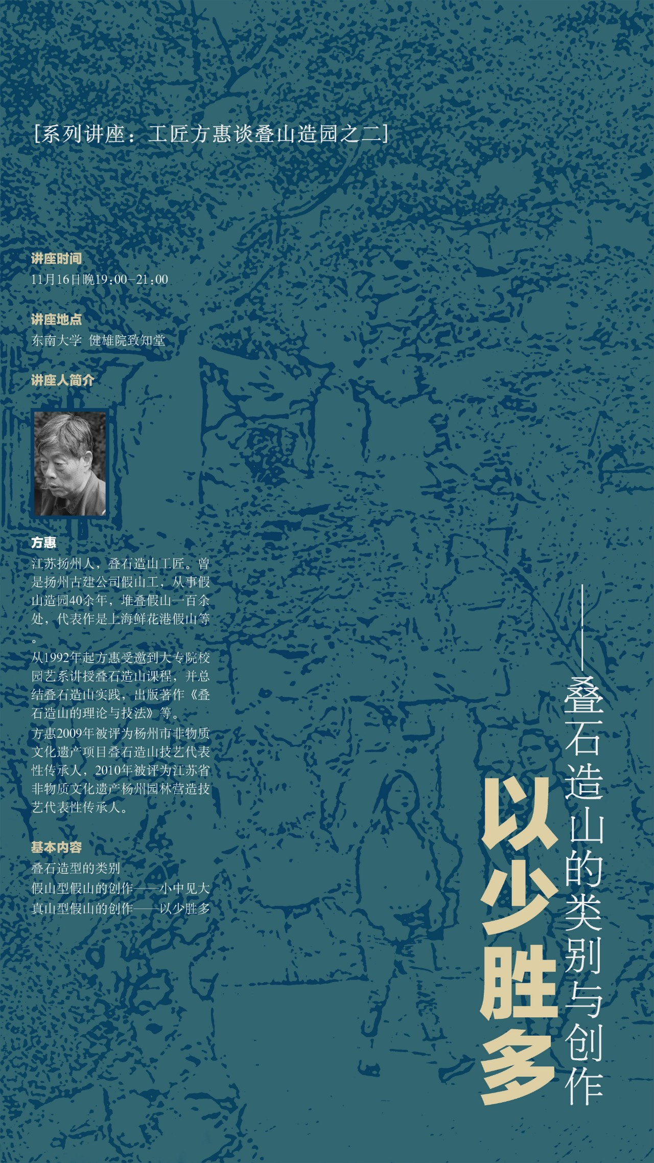上一讲的讲座“叠山是造园之本——从技法和实践角度对叠山造园演变的思考”,方老师从工匠角度分析造园现状、造园要素,以及中国叠山造园的演变过程,并向我们述说其40年的叠山造园经历。