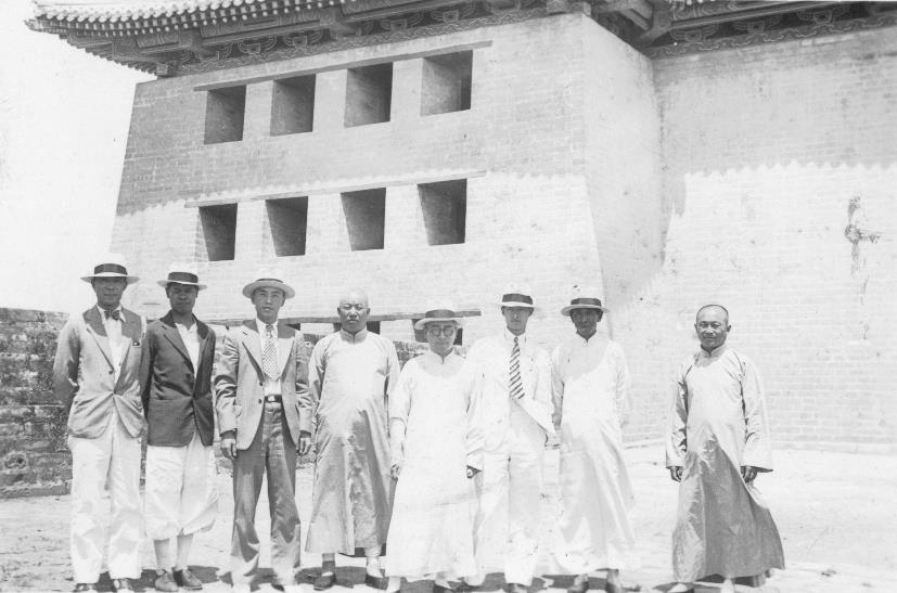 东南角楼竣工验收后合影(左三为杨廷宝)(来源:陈法青生前提供,拍摄时间:1936年)