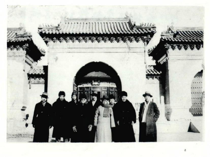 天坛皇穹宇修缮竣工验收琉璃门前合影(右一为杨廷宝)(来源:江苏省档案馆,拍摄时间:1935年12月)