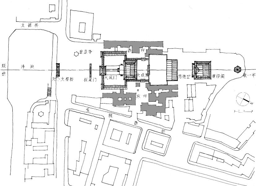 夫子庙地块位于南京市内秦淮河畔,是南京历史文化名城的重要组成部分。1984年顺应历史文化名城的复苏和发展,潘谷西先生负责核心地块的规划设计,重建夫子庙建筑群,王文卿先生负责东西市场的历史街区改造。夫子庙恢复了棂星门、大成门、大成殿、尊经阁、敬一亭等建筑,并进行环境整治,修缮了学宫等建筑;东西市场与夫子庙建筑群既有分隔又融为一体,充分体现了庙市合一的历史格局。