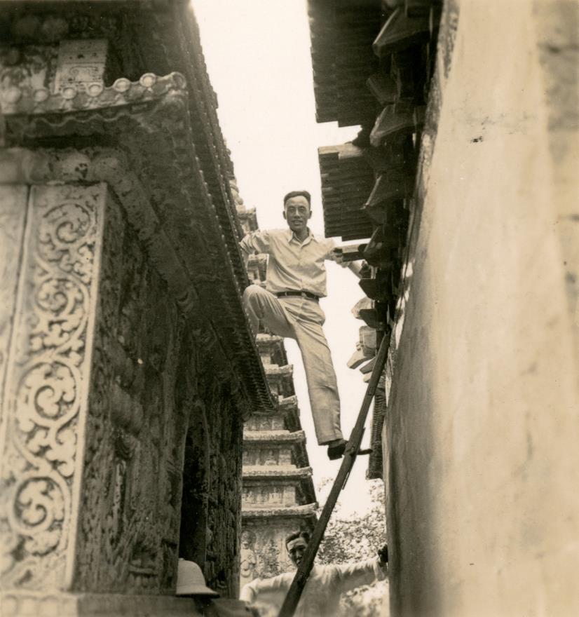 1935年杨廷宝(上)与刘敦桢(下)勘察北平正觉寺金刚宝座塔(杨士英提供)