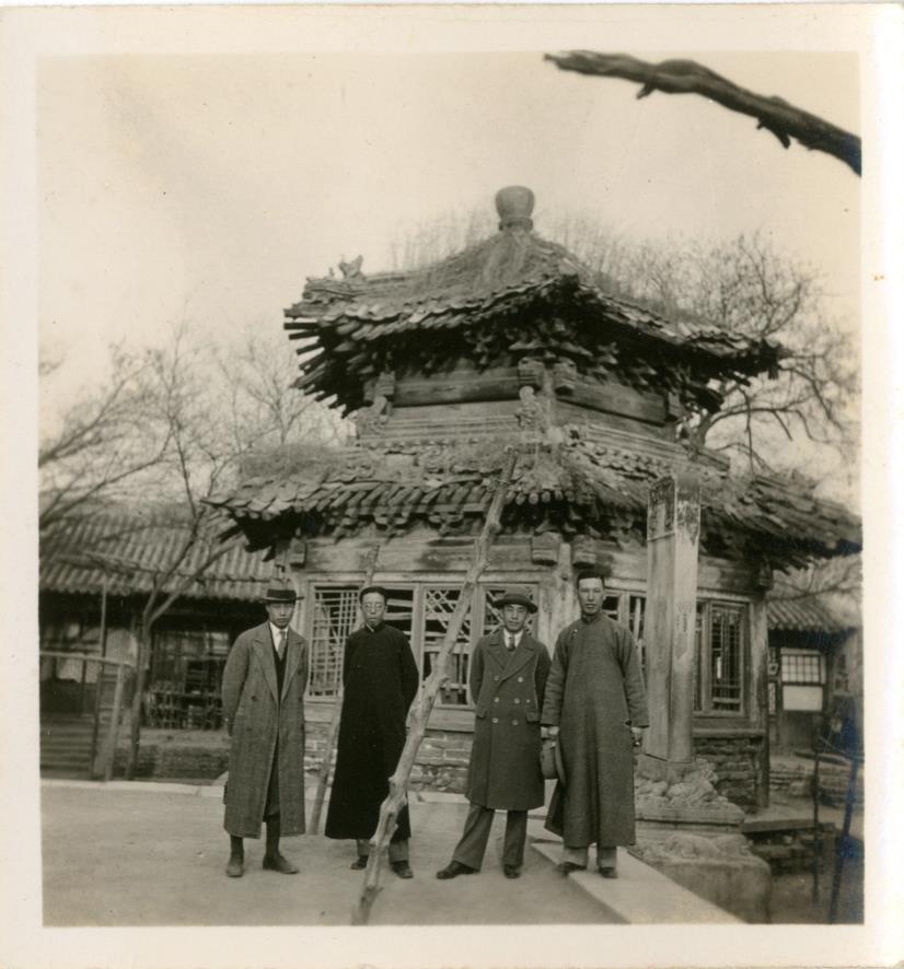 修缮北平古建前杨廷宝(右2)与刘敦桢(右1)等勘察现场(来源:杨士英提供)